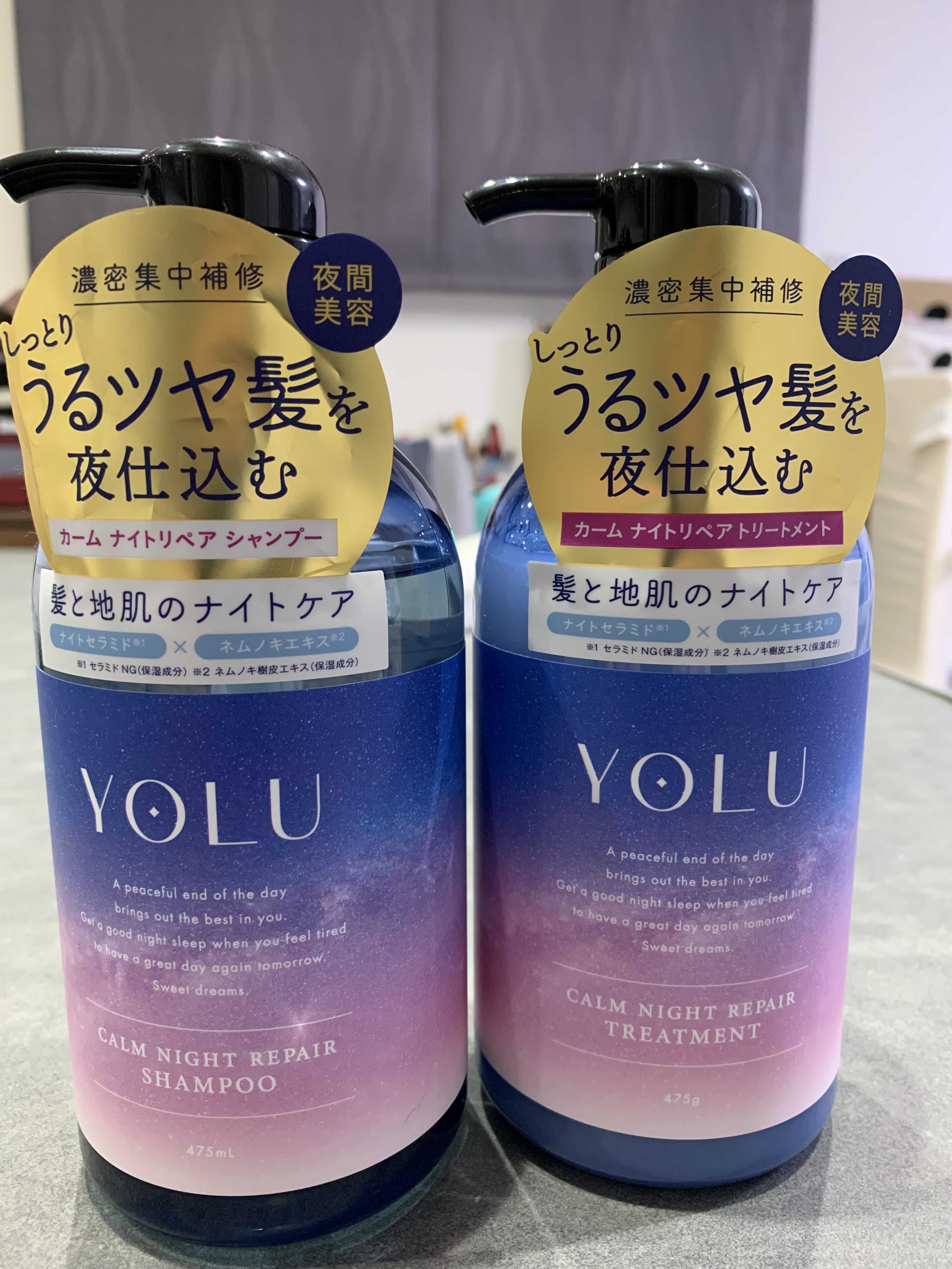 こんばんは🌇おチビもワンコも寝んね😴パパは明日から新しいシャンプー🧴とトリートメントにします😊即納【選択】YOLU (ヨル) カーム ナイト リペアシャンプー / トリートメント 475mL シャンプー ヘアケア明日楽しみ😊