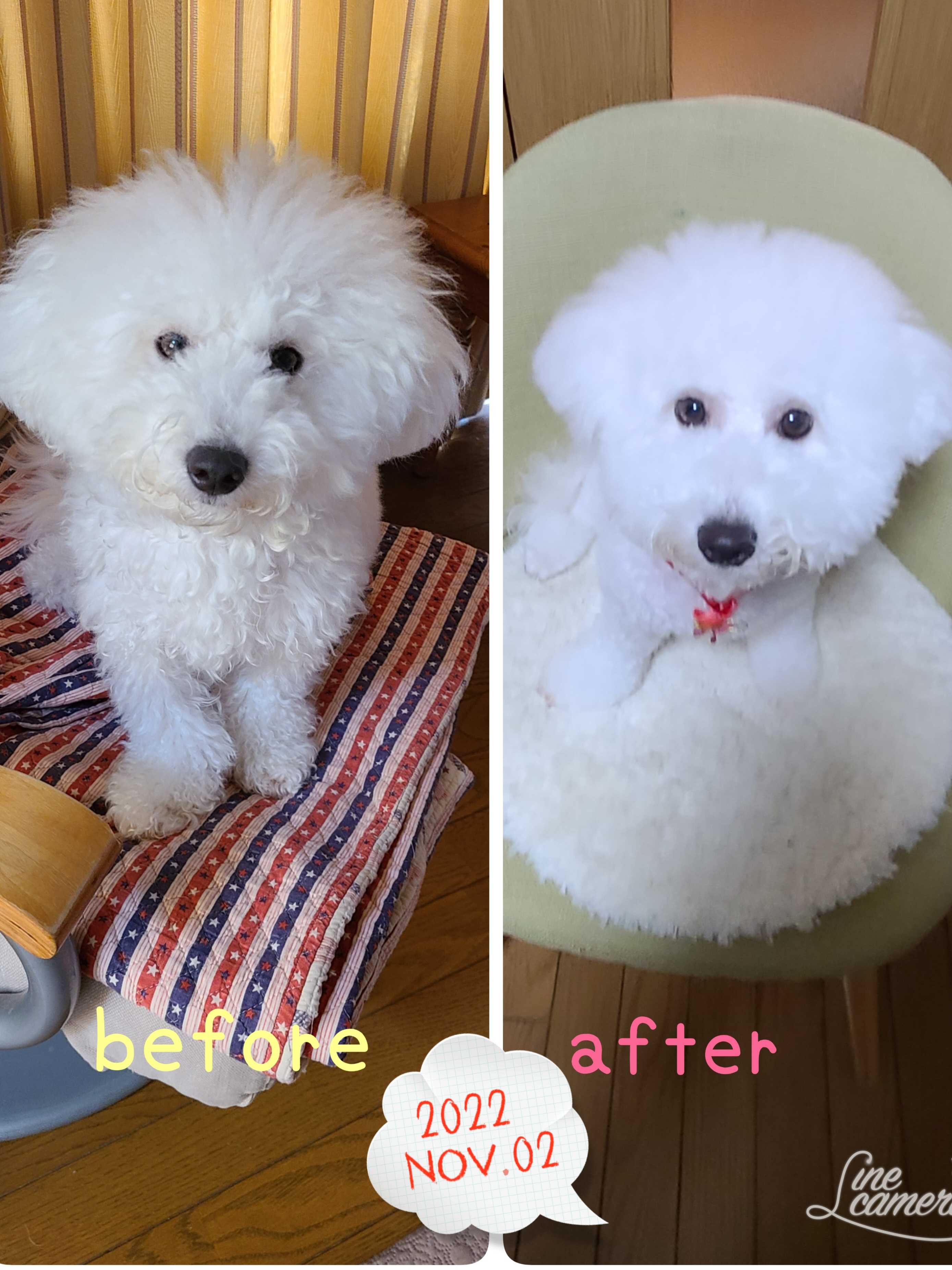 ウルル 1歳9ヶ月4.9キロ6週間ぶりのトリミング✄お預かり中 明るくアクティブなURURUちゃんと楽しく過ごさせて頂きました!特にお変わりありませんまた来月お待ちしてます。トリマーさんより♡*⋆꒰ঌ┈┈┈┈┈┈┈┈┈┈໒꒱⋆*ウルル 1歳10ヶ月4.85キロやく7週間ぶりのトリミング✄サンタさん着けてもらったよ🎵今回ももつれやすい所はスッキリ目にカットさせて頂きましたトリミング頑張ってくれてました✨トリマーさんより♡*⋆꒰ঌ┈┈┈┈┈┈┈┈┈┈໒꒱⋆*ウルル 1歳11ヶ月4.75キロやっぱり月1トリミングの方が毛玉も増えなくていいのかな…と思い今回は1ヶ月でトリミングです✄URURUちゃんは今日もいつもと変わりなくお利口さんでした!トリマーさんより♡ほんとかなぁ🤔でも終わった途端にすごい勢いで走り回った💨💨と言う話を聞いて飼い主納得です 🤭体重が減った…たぶんお正月に玉ねぎを少し食べちゃって何回か嘔吐したのが原因かと食欲 元気はモリモリだったので様子見しちゃったけど病院へ行くべきだったかなごめんねにほんブログ村応援ありがとうございますᑌᖇᴜᖇᑌ