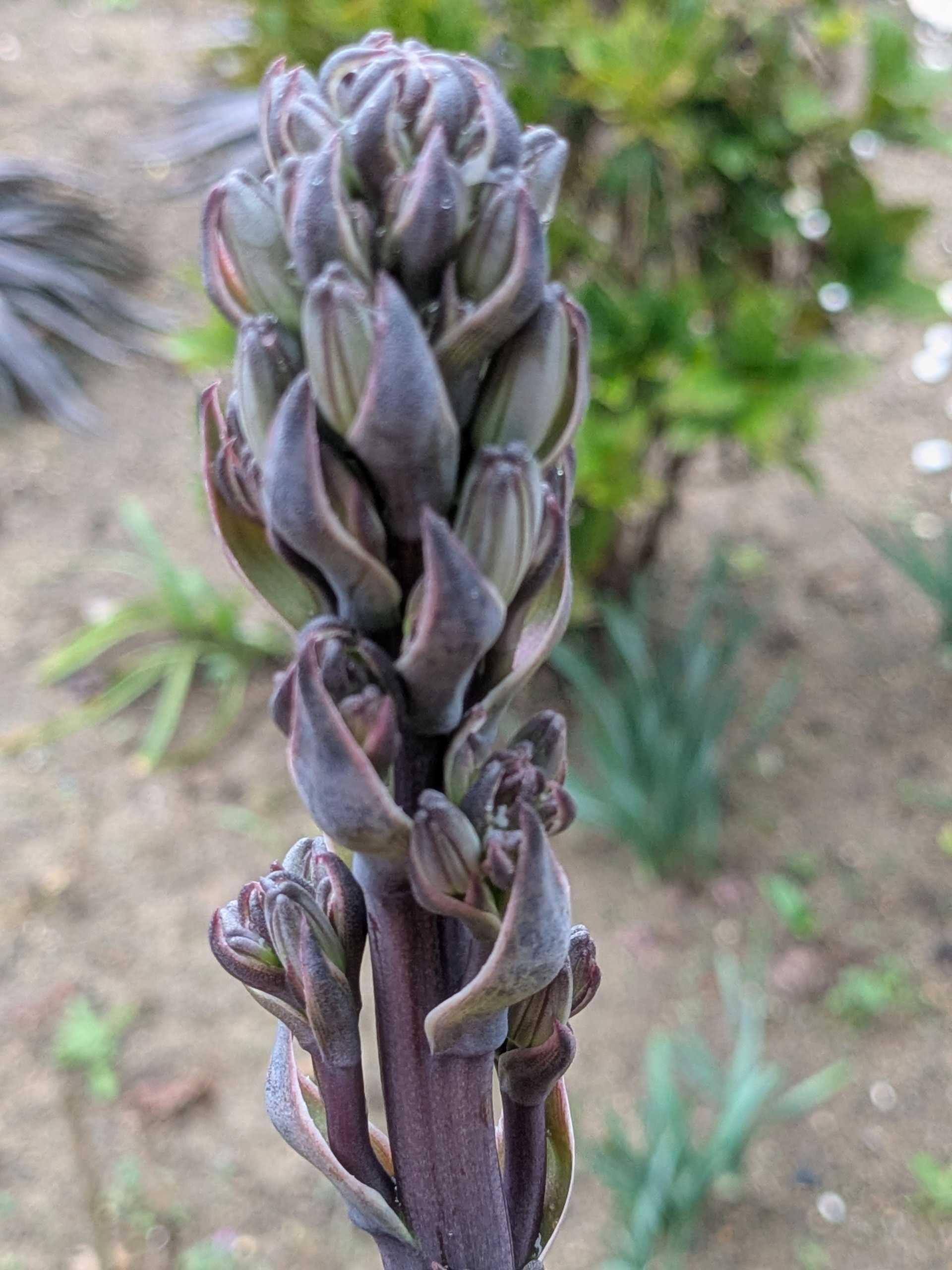 前に載せましたが、マンガベの花がなかなか開きません。 写真ほ、先端部。 寒いか…