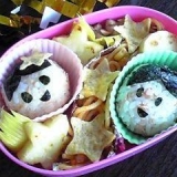 昨日は七夕だったので・・・週に1回の息子の弁当を七夕弁当にしてみました。楽天レシピで見ていたら、tekonani様のレシピが目に止まって・・・これなら私にも作れるかも・・・と、花がっぱ以来のキャラ弁?挑戦です。ちなみに花がっぱは「ブタ?」とか言われましたけど・・・七夕に☆キャラ弁☆おりひめとひこぼしのお弁当☆料理名:キャラ弁作者:tekonani■材料(1人分)ごはん / 子供茶碗1/2杯シャケフレーク / 小さじ1海苔 / 適量スパゲッティ(市販品または前夜の残り等) / 約10g薄焼き卵 / 1枚星形のポテト / 2個ウインナー / 1本■レシピを考えた人のコメント七夕用につくりました。おかずはアレンジしてくださいね☆詳細を楽天レシピで見る出来上がったのがこちら↓↓↓↓顔がところどころ黒いのはご愛敬(^^ゞシャケ使ったらよかったのですが、たまたま家に「まぜこみわかめ鮭」があったので・・・。おにぎり作るときになって気付きました。。。いまいちtekonani様のようにかわいい顔にならず・・・こんな不細工なお弁当ですが、これも私ってことで・・・記念ですよね!!