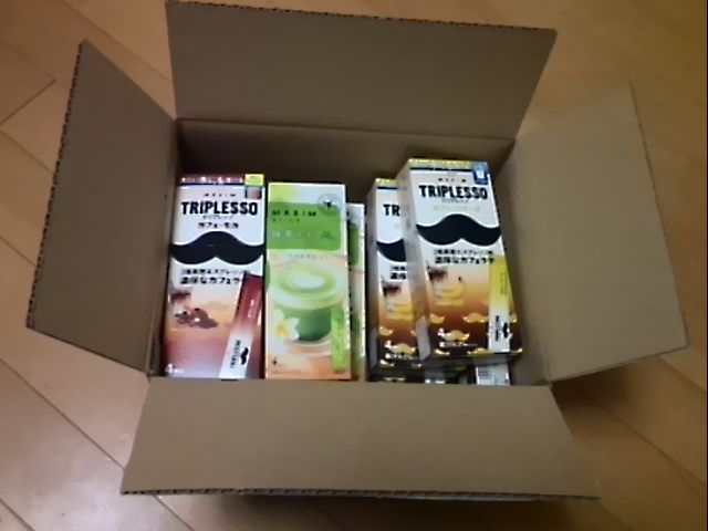 久しぶりにモラタメのサイトを見ていたら、私の好きなコーヒー系が「タメせる」にありました。「マキシム トリプレッソスティック」です。味はカフェモカ・カフェバナーヌ・抹茶ラテの3つどれも私の好きそうな味~という事で、ポチっと。わぁ~いっぱ~いこれで、しばらくは飲み物に困らない(笑)値段も850円(税抜)とめっちゃお得でした。味の感想は。どれもそんなに濃くなく(私がお湯入れすぎ???)飲みやすかったです。私の中でヒットだったのが、カフェバナーヌクセになりそうな味でした~美味しかったAGF/マキシム トリプレッソ スティック