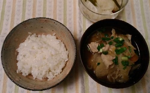 1/9の夕食です。今日は豚汁!レシピは、一応こちらを参考にしました。https://park.ajinomoto.co.jp/recipe/card/705648といっても、いつものお味噌汁の具が多いっていうだけですが・・・豚汁は体が温まっていいですね~あ、すみっこにちょっと見えるのは、戴いた千枚漬けです。ご飯のお供に・・・千枚漬 FP 京漬物 京都 千枚漬け 京土産 贈り物 土井志ば漬本舗京名物、千枚漬け取合せ忙しい人には・・・フリーズドライの豚汁![1月11日(木)1時59分まで店内全品対象 最大200円OFFクーポン発行中]【送料無料】【2ケースセット】MCFS 一杯の贅沢 九州黒豚使用豚汁 10食×2箱入×(2ケース) ※北海道・沖縄は別途送料が必要。