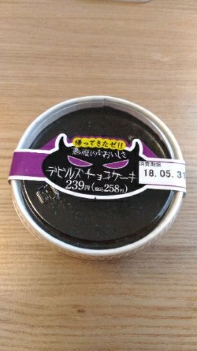 ファミマに面白いスイーツがあったので買ってみましたデビルズチョコケーキ入れ物もかわいい濃厚そう~うんめっちゃ濃厚で美味しかったです~