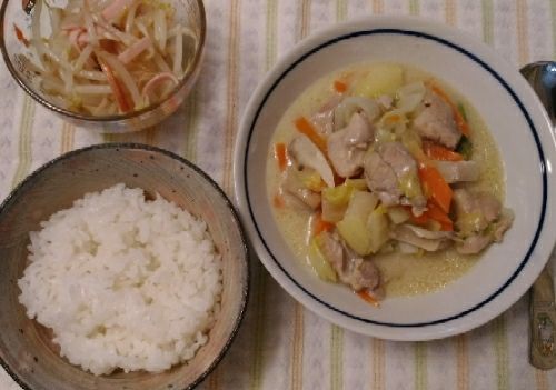 3/19の夕食です。体に優しい感じの夕食にしたくて、ミルクスープにしました。あと、もやしとハムの和え物は私の一番の時短?料理?ハムともやしを野菜ドレッシングで和えるだけあと一品な時に便利なんですよね。【訳あり】JAふらの 富良野野菜ドレッシング オニオン&オニオン(180mL)【JAふらの】ヒカリ 野菜ドレッシング 200ml私はカンテンパパの野菜ドレッシングが大好きです。http://shop.kantenpp.co.jp/