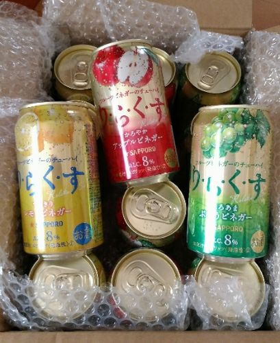 モラタメさんにて、チューハイのお試しがあったので、早速ポチッてみました。サッポロビール「リラクス」です。アップルビネガーとレモンビネガーとぶどうビネガーの三種類が入っていました。ちょうど、バーベキューの予定があったので、持って行きましたよタンにはレモンビネガーでしょう(笑)三種類全部飲みましたが、どれもとても美味しくて、ゴクゴク飲めました!「酢」が入っているという事で、体にもいい???沢山入っているし、暫く楽しめそうです!サッポロ りらくす すっきりレモンビネガー 350ml缶 バラ 1本サッポロ りらくす かろやかアップルビネガー 350ml缶 バラ 1本サッポロ りらくす ほろあまぶどうビネガー 350ml缶 バラ 1本