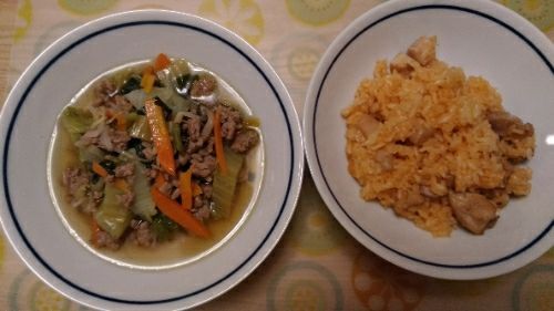 3/13の夕食です。家にあったもので、適当に作りました。野菜スープはいい感じに作れたかも~適当だったので、二度と作れないかもですけど・・・【味の素】 業務用 チキンライス 250g×5袋セット 【冷凍食品】 11【電子レンジ調理可能】【re_26】 【ポイント10倍】チキンライスの素600g【日本食研】【業務用】【送料無料】今だけ一杯約21円!8種類の 野菜もりもりスープお湯をかけるだけで手軽に栄養満点の本格野菜スープが出来るお薦めの逸品!忙しい朝や毎日の栄養サポートに♪|ブロススープ ファイトケミカル フリーズドライ スープ やさい 健康食品 炊き込みご飯