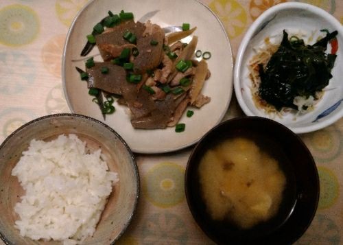 3/10の夕食です。便秘気味なので、食物繊維多めの夕食にしてみました。大豆とこんにゃくとワカメとゴボウが便通にとてもいいそうです。全部使ってやった!食物繊維というと・・・簡単に水溶性食物繊維〓【国産ごぼう茶】.〓(70g)◆ネコポス送料無料 ※代引き・日時指定不可(牛蒡茶)美容茶エイジングケア 国産 牛蒡茶 ゴボウ茶 ティーパックにはいっていないので調節が簡単【M】 _在庫限りこんなんとか、【送料無料】進化した乳酸菌ヨーグルト!ちょーぐると 100,000mg(約1ヵ月分)おなかに届けたい善玉菌ケア新乳酸菌飲料1兆9293億個の植物性 動物性乳酸菌 ビフィズス菌|食物繊維 腸活 腸内フローラ 美粉屋 腸内環境 植物性乳酸菌/プロバイオティクスこんなんとかのイメージですね~。