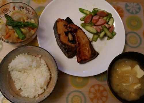 2/7の夕食です。タニタ食堂の料理本に載っていた、ブリのニンニク醤油焼。これ、美味しいんですよ。リピしちゃってます他には、アスパラとウィンナーの炒め物。白菜とニンジンの胡麻和え。豆腐と玉ねぎのみそ汁。【冷凍】ブリ 切り身 2切れ (産地:青森)※無添加・無着色【北海道産】行者にんにく醤油漬 お徳用 450g【行者ニンニク】