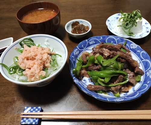 ごきげんよう🌹昨日の残りの牛肉を、今日はピーマンと炒めました サーモンたたき丼青椒肉絲風ミニ冷奴ミニトマトの味噌汁冷凍のたたきサーモン、数分で解凍できて便利だし、とっても美味しくてお気に入りです💛牛肉炒めは焼肉のタレとオイスターソースで味付け。柔らかくて美味しいんやけど、今日は胃もたれしてました💦こんな日は普通の白ごはんにしたら良かったかもね(もう遅い)日付が変わって9月になりました。今年は暑いのが長いのでマジでしんどいです。みなさま、9月もよろしくです ほなっ