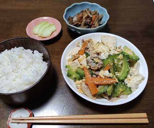 ごきげんよう🌹 少し前、ゴーヤちゃんぷるーを作るはずが、ゴーヤを注文し忘れて届かなかったので、今日はリベンジです! ゴーヤチャンプルーきんぴらごぼう瓜の漬物やっぱ、ゴーヤは美味しいね~💚豆腐もチャンプルーに入れると美味しく食べられる。けど豆腐で満腹になってしまうので、なくても良いかも(どっちやねん!)ゴーヤも1本まるまるは多くて使えないので、明日は残りのゴーヤを食べます。食べたかったゴーヤちゃんぷるーが食べられて大満足でした ほなっ