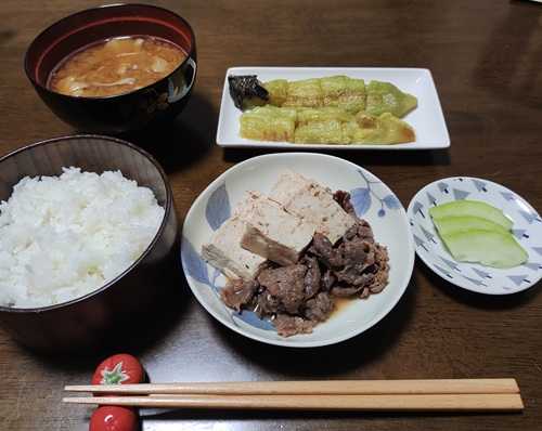 ごきげんよう🌹今日の夜ごはんは肉豆腐 焼きナス・味噌汁・漬物肉豆腐、美味しかったですお豆腐があまり好きではないので作った事がほぼないのですが、思っていたより豆腐も食べやすくて、これはアリだと思いました💚焼きナスは焼いてませんよ!冷凍の焼きナスをチンしただけです(^_^;)かつお節とポン酢だけで美味しいです。生協では、もう「酒粕」が出ました。早くね?まだ暑いのに酒粕を見ると粕汁が食べたくなってしまう単純なヤツです💦さすがに、もうちょっと涼しくなってからにしよかね?ほなっ