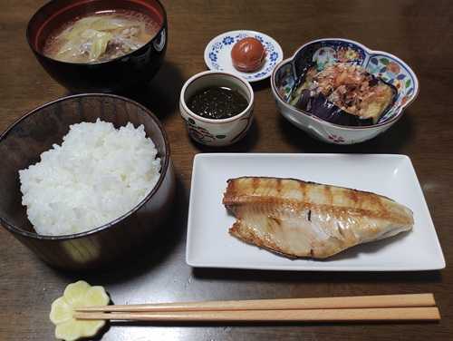 ごきげんよう🌹今日の夜ごはん 真ほっけ一夜干し揚げナス麵つゆ浸しもずく酢肉吸いとっても和食で美味しゅうございました(*^^)v今日から新米でーす🍚せっかくの新米やのに冷やごはん😅冷めてても美味しい新米です。コープで抽選やったけど、届いてラッキーでした。話は変わって、白髪染めをやめて5年以上経つけれど、最近、急に「青髪」にしたいと思い始めています。青のカラーシャンプーにしようかと。ちゃんと染まるかどうかわからんのと、青にも色々あるから奇抜くなったら困るし、あと、お風呂場が青くなったら嫌だなぁ~。という不安要素があってなかなか実践しませんが。希望は「深い青」ネイビーみたいな?感じが良いな。本当にやるかどうかはわかりませんけどね(;^ω^)ほなっ