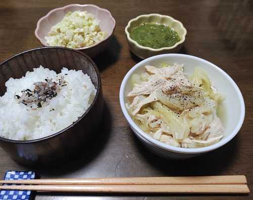 ごきげんよう🌹あら大変!子供が窃盗で捕まったと警察からメールが来ました!今から警察へ行ってきます。えっ?・・・私に子供おったっけ?今日の夜ごはんは、エンドレス鶏むねキャベツキャベツ4分の1個+鶏むね+ニンニク1片 だけです。コトコト1時間かかるけど、放置で良いので楽でした YouTubeの概要欄にレシピ載ってます。 キャベツの残りで「ごまマヨ和え」めかぶ鶏むねキャベツ、とても美味しゅうございました トロトロになったキャベツが良い感じです。でも、ちょっとだけ胸肉がパサついてしまっていました。使ったお鍋がちょい大きめだったので(20cmくらい)水分が減ると具材が出てしまい、あと、ステンレス鍋だったので水分が蒸発しすぎてパサついたんだと思います😅これは小さめのお鍋が良さそうです。と、リュウジさんも動画内で言うてはりました。美味しいには違いなく、あっさりしてるのでモリモリ食べられるし、これはリピ決定でございます。次は小さめ鍋か、水分量を増やして(調味料も多くして)作ろうかな?ほなっ