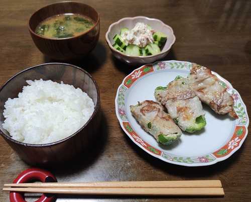 ごきげんよう🌹昔、姪っ子によく作っていたピーマンの豚肉チーズ巻きを久々に作りました💚 ピーマンの豚肉チーズ巻きツナキューリ味噌汁(人参と小松菜)ピーマン、ポン酢で頂きました。中のチーズがとろけて良い感じでとっても美味しかったです💚そういえば姪っ子もいつも喜んで食べてたなぁ~。美味しかったのでこれからちょくちょく作ろうと思いました。実際はピーマン4個分、完食しています😅お腹いっぱいになったよ。毎日ごはんが美味しくて幸せです💖ほなっ