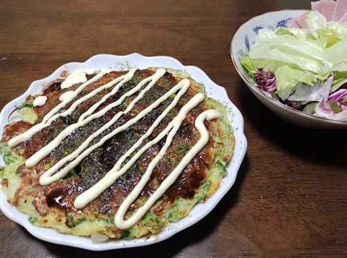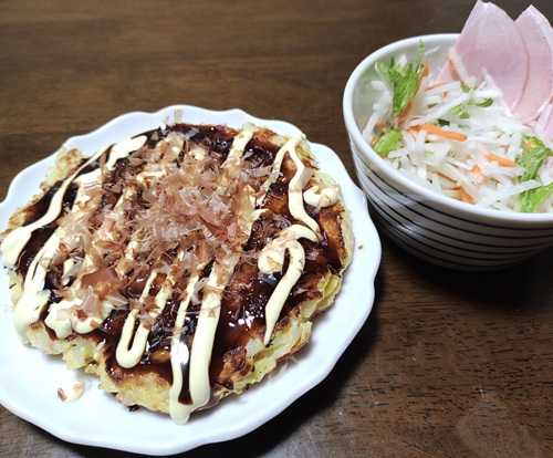 ごきげんよう🌹 昨日と今日の夜ごはんは、お好み焼きです。 ・・・つい最近、全く同じ画像を載せた気がする😅あの日も確か、お好み焼き&ハムサラダだった様な。今回はネギをたくさん入れてネギ焼き風にしました💚美味しかったです💚💚昨日、生協が届いてピンクの紙が入ってまして、ピンクは欠品のお知らせです。たまにあるので驚きはしませんが、何が来なかったのか見てみると、「ご注文の商品は製造工場の火災により製造が休止となりました」どんな理由やねん!そんなん言われたら気の毒でしゃーなくなるし、どうか、頑張って下さいとしか言いようがありません💦ほなっ