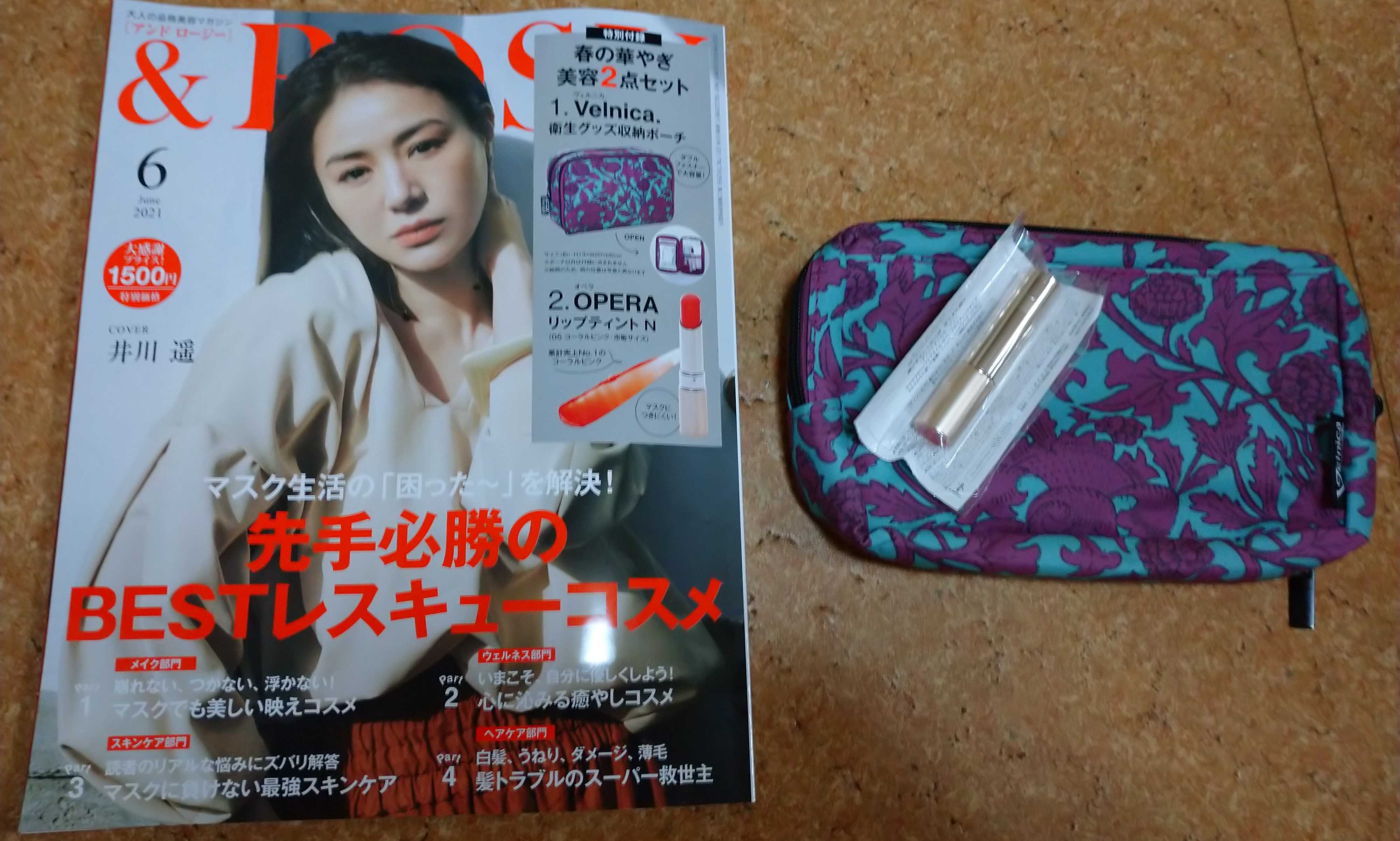 &ROSY6月号。なんとオペラのリップティントが現品サイズで、ヴェロニカの便利そうなポーチもついていて1500円ですってぇ!?