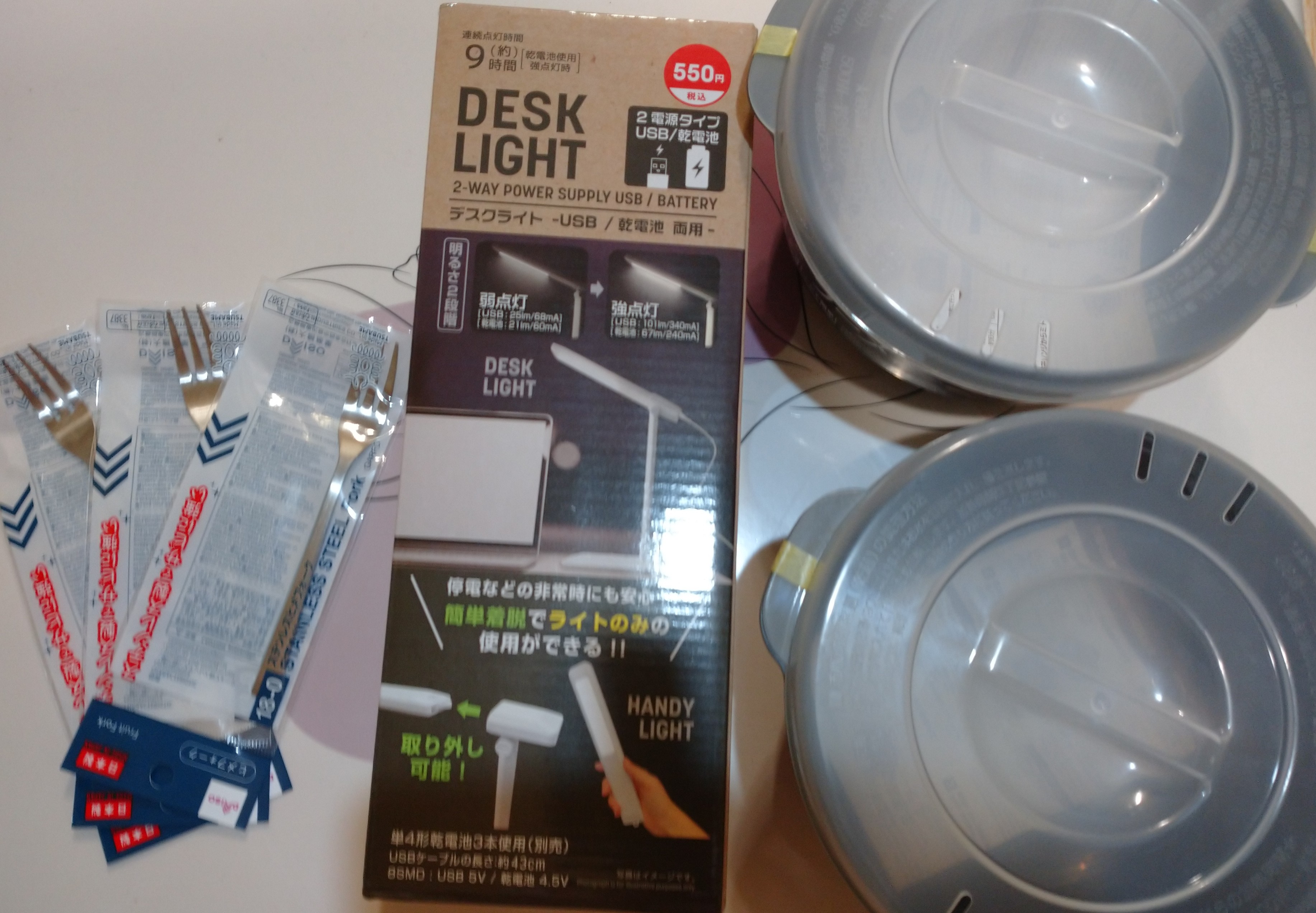 真ん中:デスクライト。昔の100円ショップのデスクライトってまずまぁ使い物にならなかったのだが、これは神すぎた。詳しくは後日説明したい。