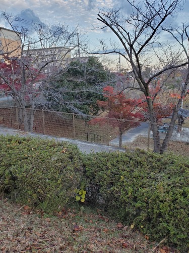 今日も曇り空の中散歩に出かけた。1周をしてコロは昨日とも違うルートを歩き始める。このままで帰ると昨日よりは短くなるなと思ったら、途中で迂回をするなどほぼ昨日と同じ距離をあるいた。今日はエアコンの取り付けに来るということで、早めの掃除をする準備をしていいたら8時に電話があり、9時には来てくれると言ことだった。コロはリビングに入れるだけだと、工事の人の出入りなどが気になるのか、リビングを出たがるので、サークル内に入れたら大人しく座っていた。当然ひと声も鳴かなかった。1時間で、エアコンの取り付けと片付けが終わったので、ほぼいつもどおりのペースで掃除と洗濯をすることができた。昼から校区ボランティアの定例会に参加する。会場は各町内会が2年ごとのもちまわりで、来年から2年間はうちの担当になるので、来年度はさらに忙しくなる覚悟はしている。上の写真は現在担当の町内会館の近くの神社の一角、紅葉がきれいだった。12月末の80歳以上の高齢者世帯の希望者に配るおせち料理の配布についてなどの話し合いだった。以前は普通に調理したものを配っていたが、食中毒の問題があったので、ここ数年来真空パックにして配布している。