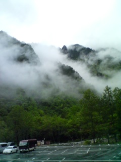 霧が少し晴れてちらっと、周囲の山が見えるのだが、一瞬。