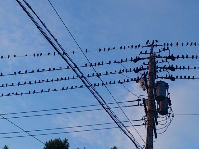 今日の夕方こんな感じでひよどりが大量に電線に止まっていた。これだけの群れをみるのは珍しいことだ(写真は借り物です)