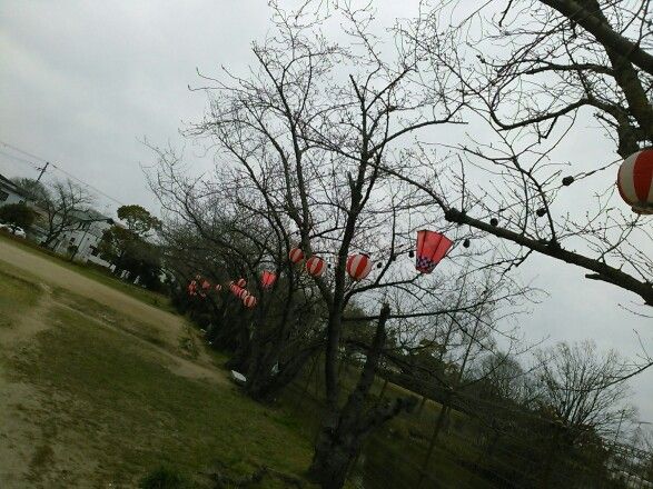 家に帰って、昼過ぎにコロを公園に散歩に連れて行ったら、ぼんぼりは完全にとりつけられていた。