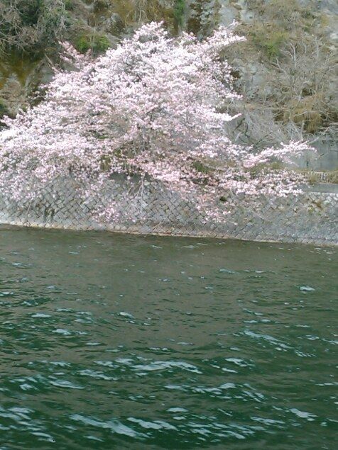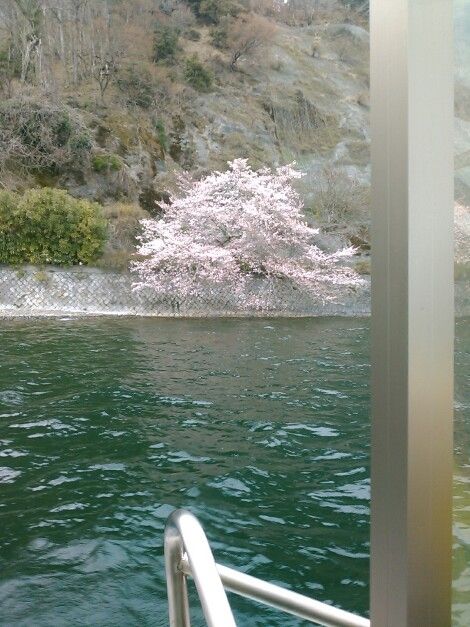 そのまま、遊覧船にのって琵琶湖の水上から街道の桜並木をみることになった。