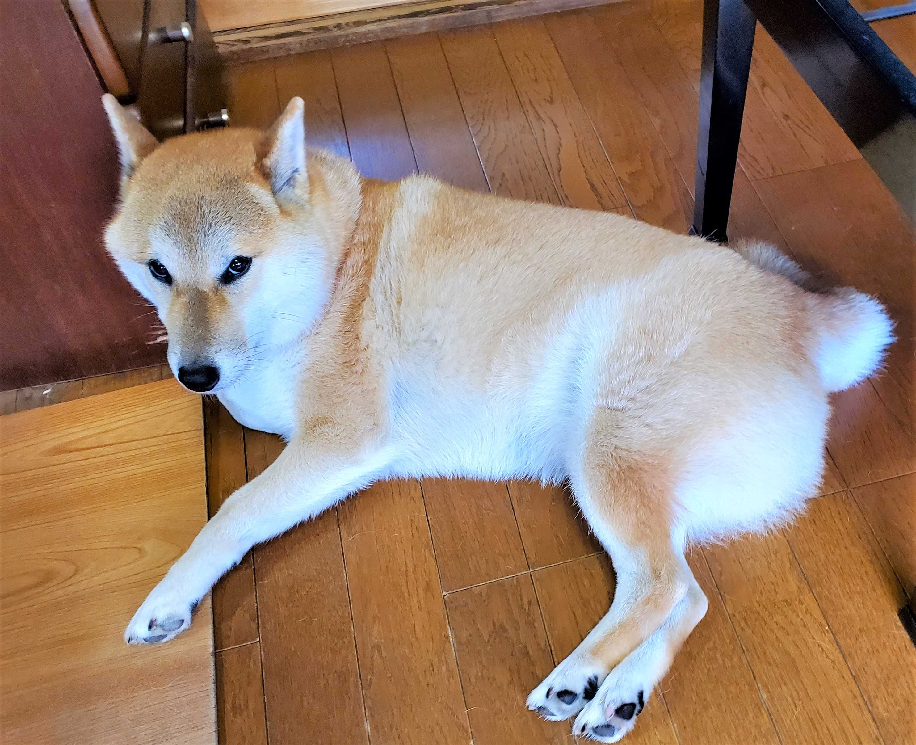空のほうはあまり晴れてないので、家に帰っても日向ぽっこができず、家の中から外を眺めているコロだった。