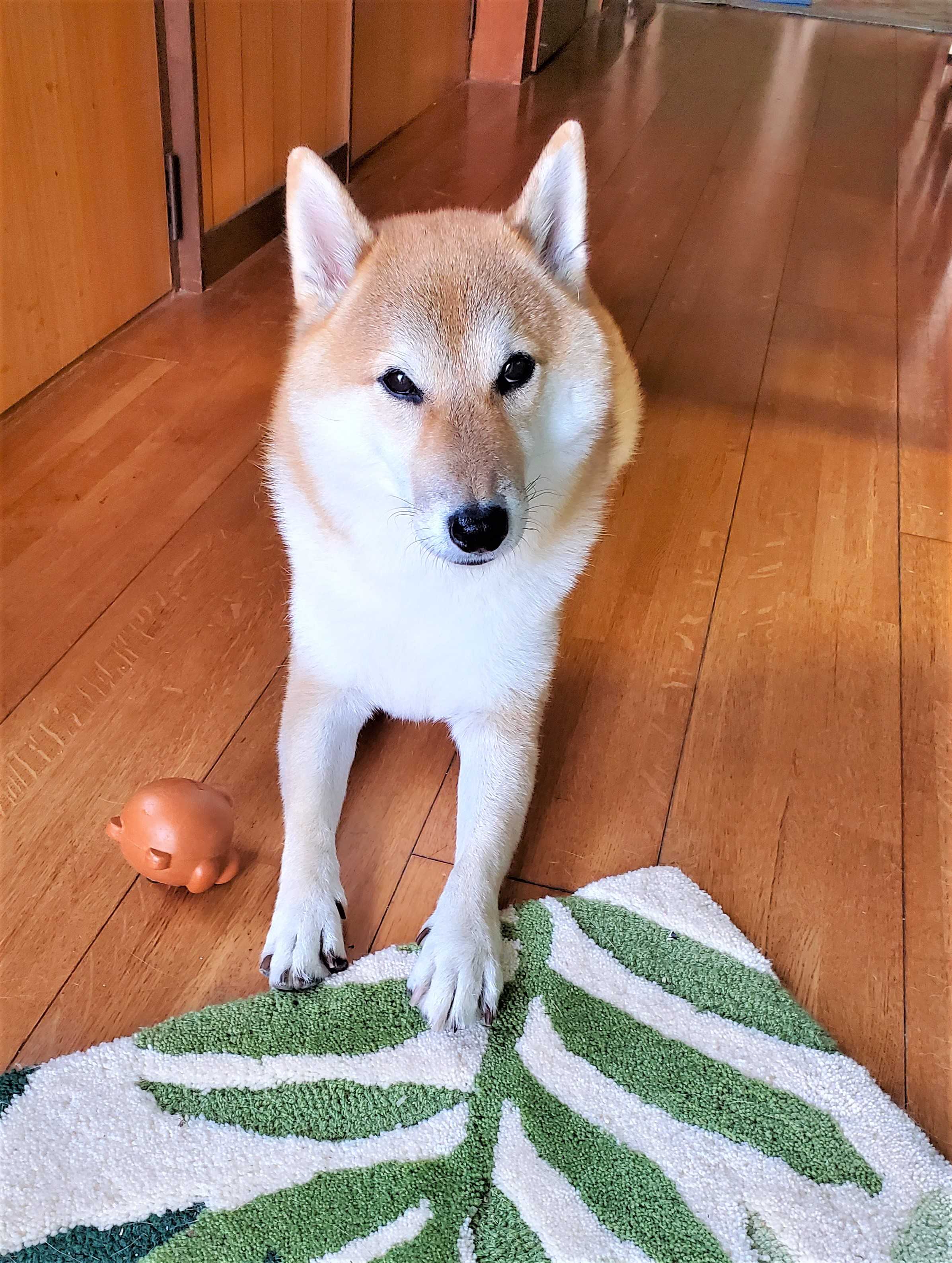 夕方になって雨が降り出してきたので、廊下でおもちゃで遊んでいるコロだった。 ​​