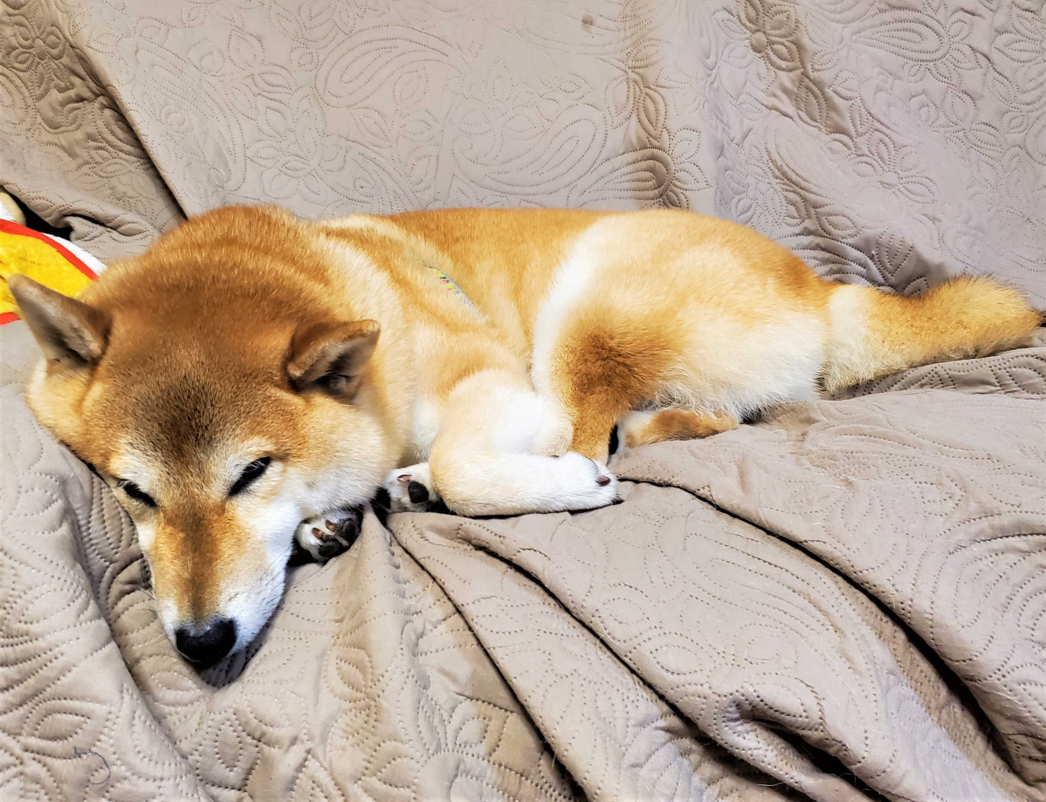 今日は地面が濡れてないし、気持ちよく散歩ができたよ。少しひんやりで気持ちがいいなbyコロ