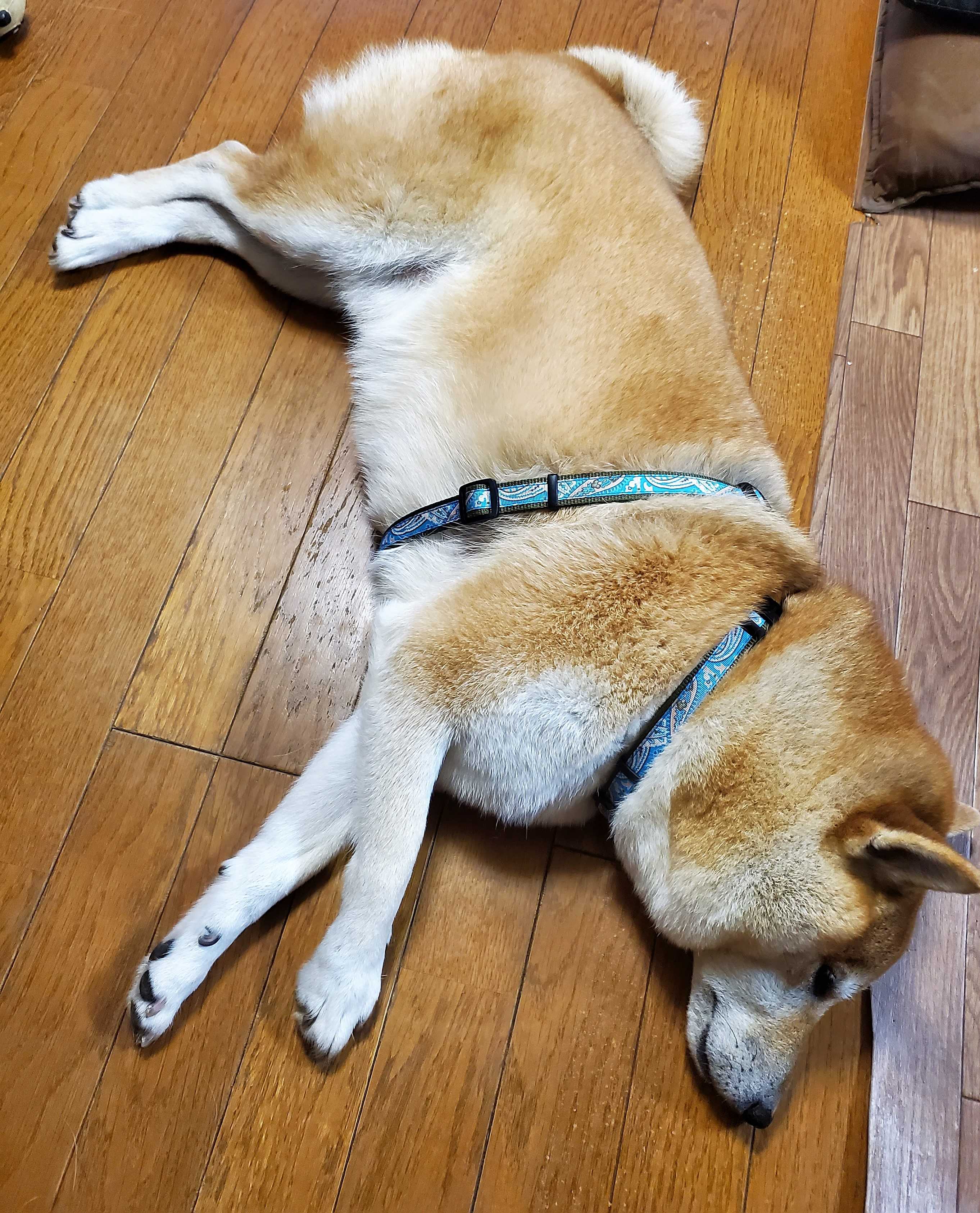 床暖房の上で寝ています。暑いなと思ったらソファーの上に移動しますbyコロ