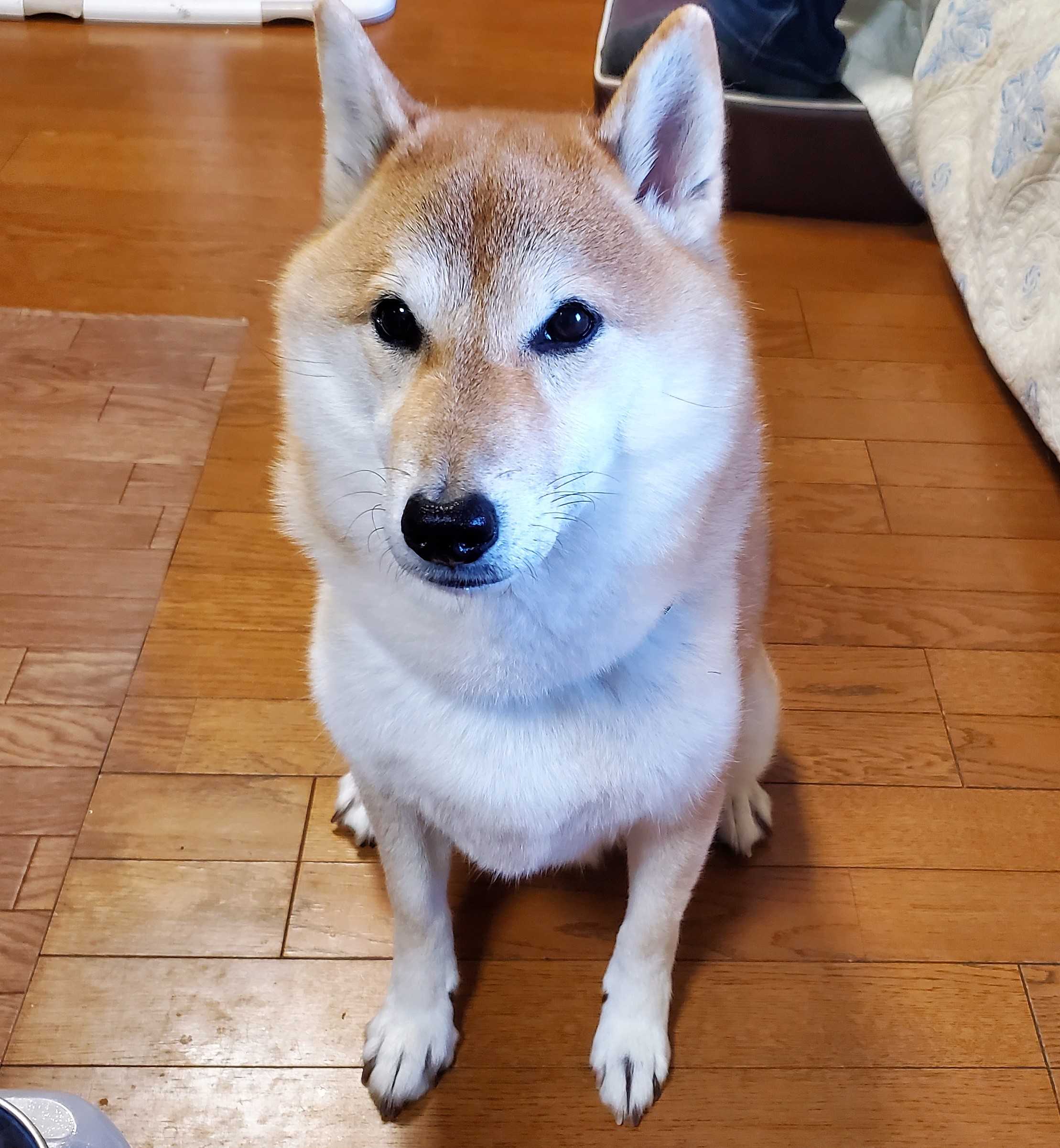 お母さんもう少しおやつほしいんだけど、お願い。くれるまで待ってるbyコロ