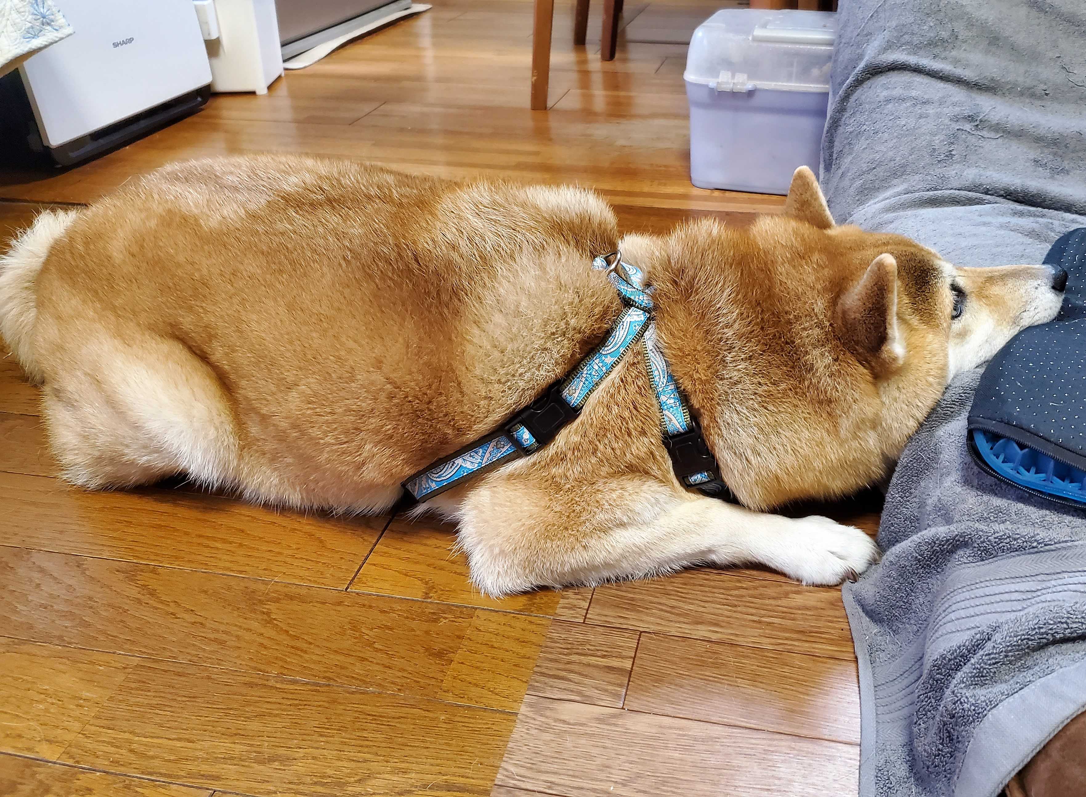 これはテレビ観賞用の座椅子なんですが、ちょうどあいていたので顎を載せて昼寝しようかなって思ってます。床暖房で暖かいしねbyコロ