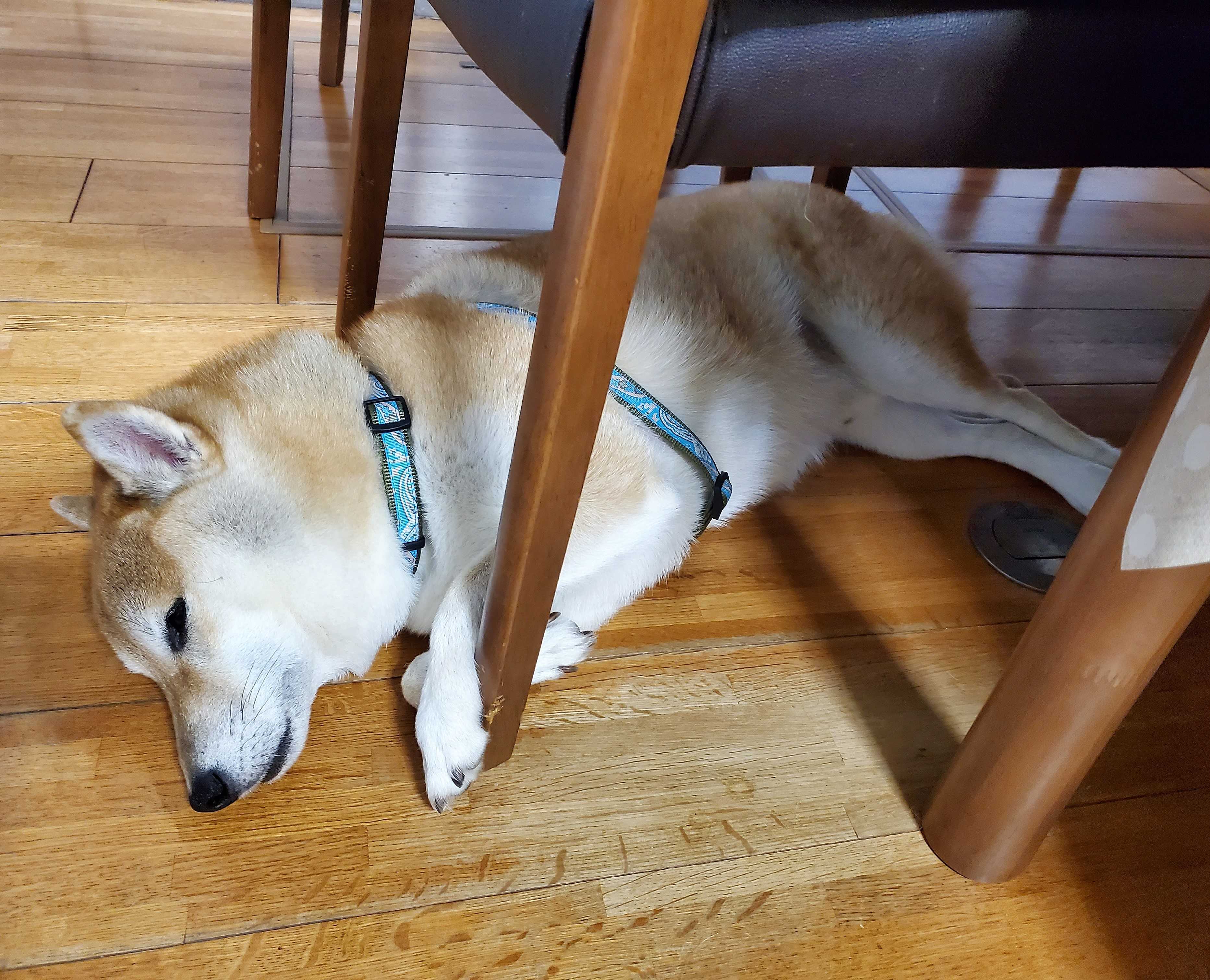 お母さんが帰ってきたので、鬼ごっこしてもらったり、おやつをおねだりしたり相手をしてもらったので、満足してねちゃいましたbyコロ