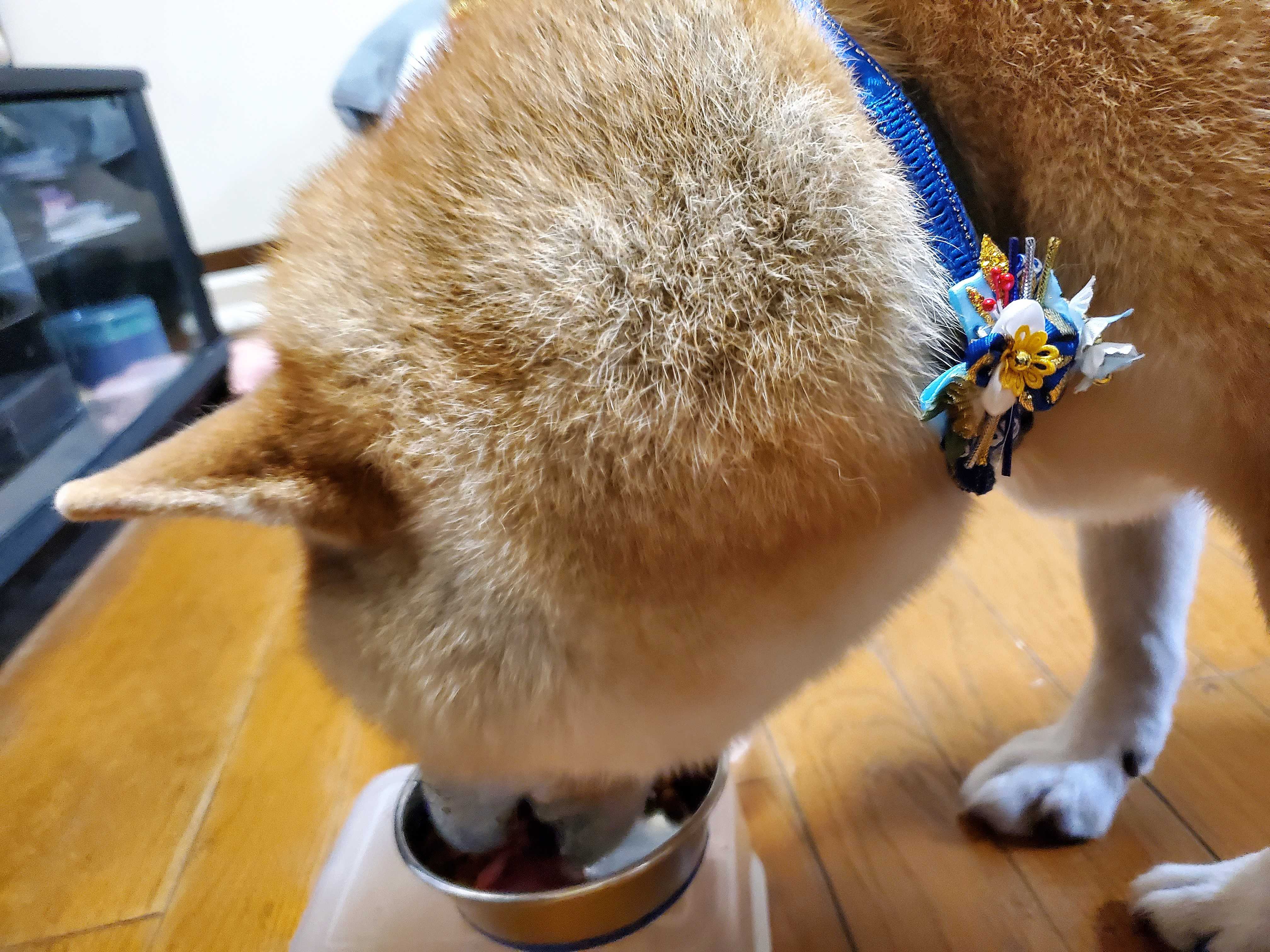 今日シャンプーに行ったらいつものバンダナではなくて、飾りのついたリボンをつけてくれました。