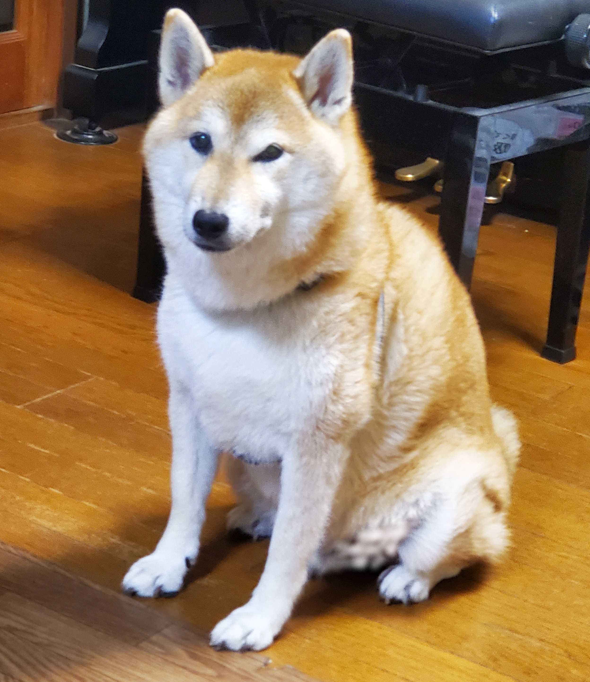 お母さんそばに行ったらおやつくれるかな。そこが問題だbyコロ