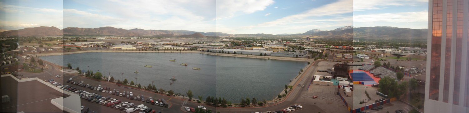 問題だった仕事の方もなんとかめどがついたので、後は残りの人にまかせて、夕方の便でReno, NVへ。出発を遅らせようと決めたのが遅すぎたので、ホテルはそのまま昨日の分から支払ったような格好になった。安いパックで頼むとやはり、こうした時の融通がきかないね。でも、正規の2泊分の値段で3泊できるはずだったみたいなもんだから、元に戻っただけみたいなもんだな。飛行機の便は、出発を1日ずらすだけだと、+311ドルのところが、帰りも1日遅らせると、早朝の便ってことになるからか、+30ドルで済むことがわかった。そりゃホテルもう1泊払っても安いでしょ。大事な研究費を使うんだから、安い方にする義務があるでしょ!って、自分に言い聞かせながら(^^:、1泊延長。(実際、Orbitzで1泊追加を買ったら、68ドルでした。)今回は、プレゼンが最後の日だったので、その1泊は、ちょいと羽を伸ばせるのが嬉しいかも。さて、いつものようにオンラインでチェックインして、後は、遅くとも出発の30分ぐらい前にセキュリティのゲートに着けば良いだろうと、結局は、まだ問題だった仕事の始末をギリギリまでしていた。ふと思い立って、フライト情報を見ると、7時19分発のSBA-SFOが2時間の遅れとある。マジ!?それでは、コネクションが30分しか残らない勘定。これも、遅れが予定どおりならば。ヤバい。今夜もたどり着けないってそんなんあり!?(よっぽど縁がないのかも)って、思いながら、でも今行けば6時半のL.A.経由で行ける可能性が高いことを発見。誰か帰る人に乗せてもらえないかと探したが、(もう、みんな帰って、いないじゃん!(汗))バスは?次のが、15分後のが空港に6時着予定。バス停まで普通に歩いて約10分弱。次のバスは30分後。「ヒェエ、急げエ!」とにかく、旅行の用意を持ってきていたバッグに、途中で片付けるなど、必要と思われる書類と、とにかく何よりも必要なパソコンををグシャアっと押し込んで、バス停まで急いだ。途中走って息急きながらなんとかバスに乗る。自分の時計が進んでたのか、運転手は、しばらくのんびり窓とミラーと、拭いてましたけどぉ。(私、汗だくなんですけど...。)空港カウンターへ付いたのは6時5分頃だったろうか、誰も並んでなかったので、すぐ受付に飛び込んで交渉開始。彼は、AmericanのSF行きに乗せてあげられだろうって、でもあちらも遅れてるかもと、あっちのカウンターに走って聞きに行った。(小さい空港だから...(^^; )「アメリカンも遅れてる!」ロス行き(あと20分!)しかない。でも、乗り継ぎの便の手配に手間取る。結局、アラスカエアラインが運行するアメリカンの便なら、ロスから直接Renoへ行けそう。でも他社の手続きは時間がかかりそう。「とにかく、L.A.までの搭乗券あげるから、ゲートに行ってて。乗り継ぎのは、今、持っていくから。」(そう。セキュリティチェックってのがあるのよ、まだ!)でも、持ってくるなんて、マジ、小さい空港でしょ。ま、セキュリティも一番乗りで、(っていうかダントツのビリ!)でもパソコン出して、靴脱いで、(あ、穴。あああああもう、どうでもいいし!誰も居ないんだから。)ゲートについたときは、最後の人の背中がかろうじて見えた。カウンターの彼は、ゲートの端末で引き続き手配中。ま、ここまできたんだから、大丈夫だろうと、自分はあまり焦っていなかった。ふと見るとゲートのも切りおばちゃんが、ゲートを出たところで飛行機の方に向かって何か叫んでいる。聞けば、「ちゃんと飛行機まで行かないで、途中の所で何人かで立ち止まって話してんのよ、全く何やってんのかしら。」ってことらしい。その横で、係の彼は焦りまくりで、必死に何とか代わりのチケットの手配をしてくれた。よしってわけで、レッツゴー!結局は、L.A.からの便も遅れてほぼ元の予定のとおり、11時半過ぎにReno空港に到着、あと5分後に出るという最後のシャトルバスにも間に合い、なんとか2泊目は逃さずに済んだ。部屋は写真の通り。広いし、きれいだし、外の景色も良い。まだ、夜景だけど。これを2泊も無駄にするところだったなんて、とんでもない!お風呂は今いちかなあ。それほど大きくないし、浅い。あと、コーヒーメーカぐらい欲しかったなあ。電子レンジや冷蔵庫までは言わないからさあ。実際、寝られるかどうかわからない広いベッドよりも、コーヒーの方が大事なんだから。ま、お茶とか湯沸かしセットとか持ってきてるけどね。というわけで、立てこもり七つ道具セット公開。日本食も欠かせない。この辺ならあるかもしれないが。そういえば、今回は慌ててて、イーサネットケーブルの延長プラグを忘れたけど。ああ、なんか腹が減ってきた、夜食のカップラーメンでも食うかな。ところで、アラスカエアラインでもらった搭乗券に、SSSSのマーク。当選しちゃったんです。コンピューターがランダムに選ぶらしいが、実は、3度目です...。コンピュータに選ばれるなんて光栄!(とほほ)とにかく、これに選ばれた人は