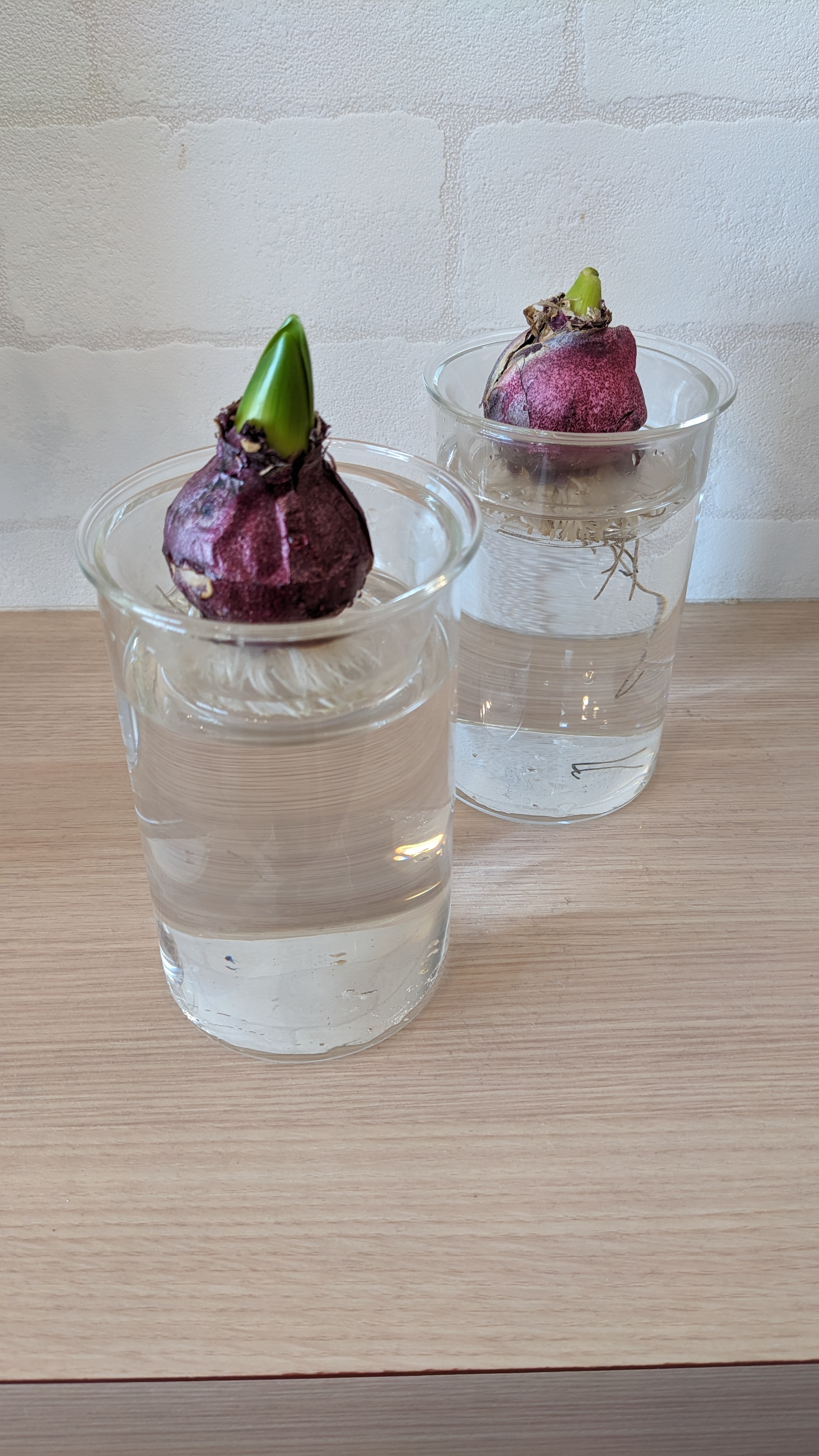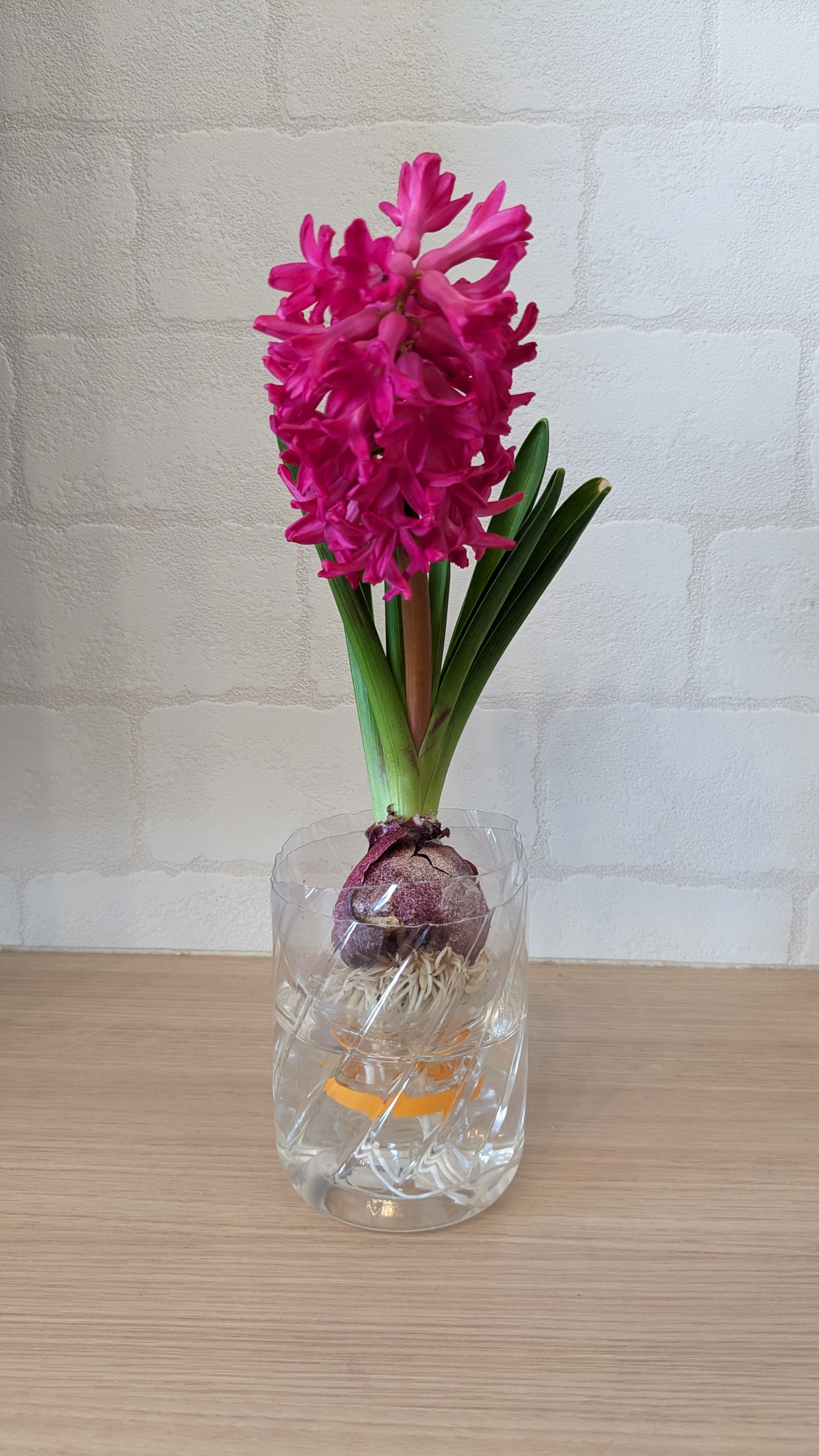 またまだ寒い日が続きますが、日が長くなってきて、春に向かっているなぁと感じる今日このごろ。お花をお家に飾りたいなぁという欲が出てまいりまして、先日はチューリップをお花屋さんで買ってきて部屋に飾ってみました🌷見ているだけで気分が華やぎます。今年はお花を飾る機会を増やしたいなぁという思いから、部屋の中でヒヤシンスを水耕栽培してみることにしました。本来ヒヤシンスの球根を植えるのは10月〜11月が適しているのですが、思い立ったのは1月末…果たして花は咲くのでしょうか?どうしても諦めきれず楽天市場で早速ヒヤシンスの球根を購入。届いたものを開けてみると既に根っこと芽が出てました。水耕栽培用の容器も購入。早速本日、球根を水につけてみました。おしゃれで良い感じです。専用の容器は1つ1,320円で購入しました。専用の容器を買わなくてもペットボトルの上3/2位をハサミでを切って、逆さにして差し込めば代用できますよ!こんな感じです↓↓ペットボトルをカットする際は手をケガなさらないよう、十分お気をつけください。切り口で手を切るのを防ぐためにテープを貼ってみるのもいいですね。さて、また成長が見られたときに都度報告します。