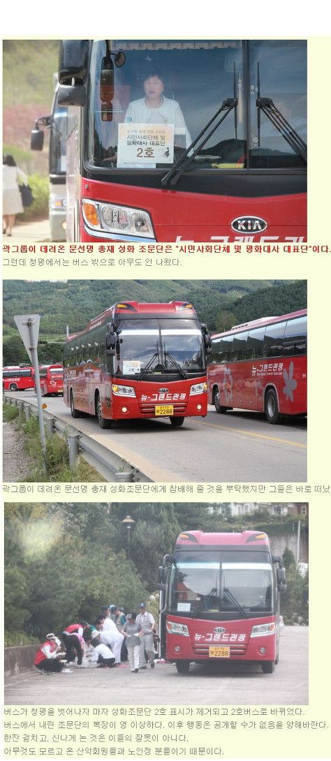 と家庭連合側が韓国カフェに掲載した。その後、ワールドセンターを後にしたバスを追って撮られたフォト、下部3枚目がその証拠写真ということだ。