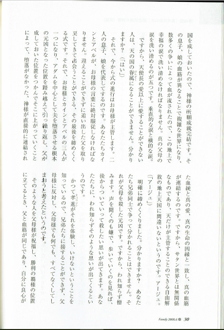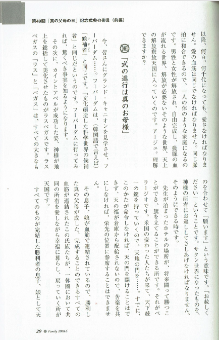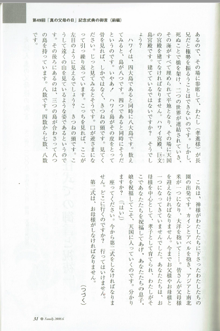 2008年4月6日の儀式、このみ言は『ファミリー』の2008年6・7月号に掲載されているが、その中からP.29~31。