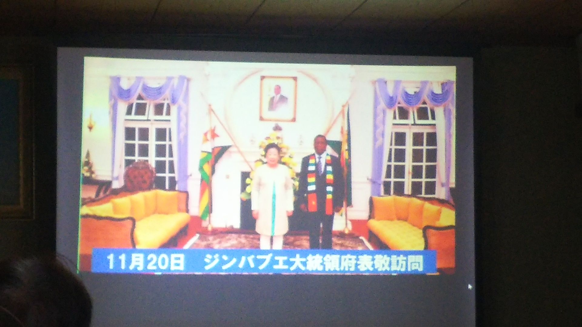 アフリカ大会。大統領と会見。首にかけているものが大統領の地位を現わすものとのことだが。