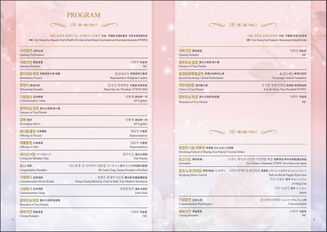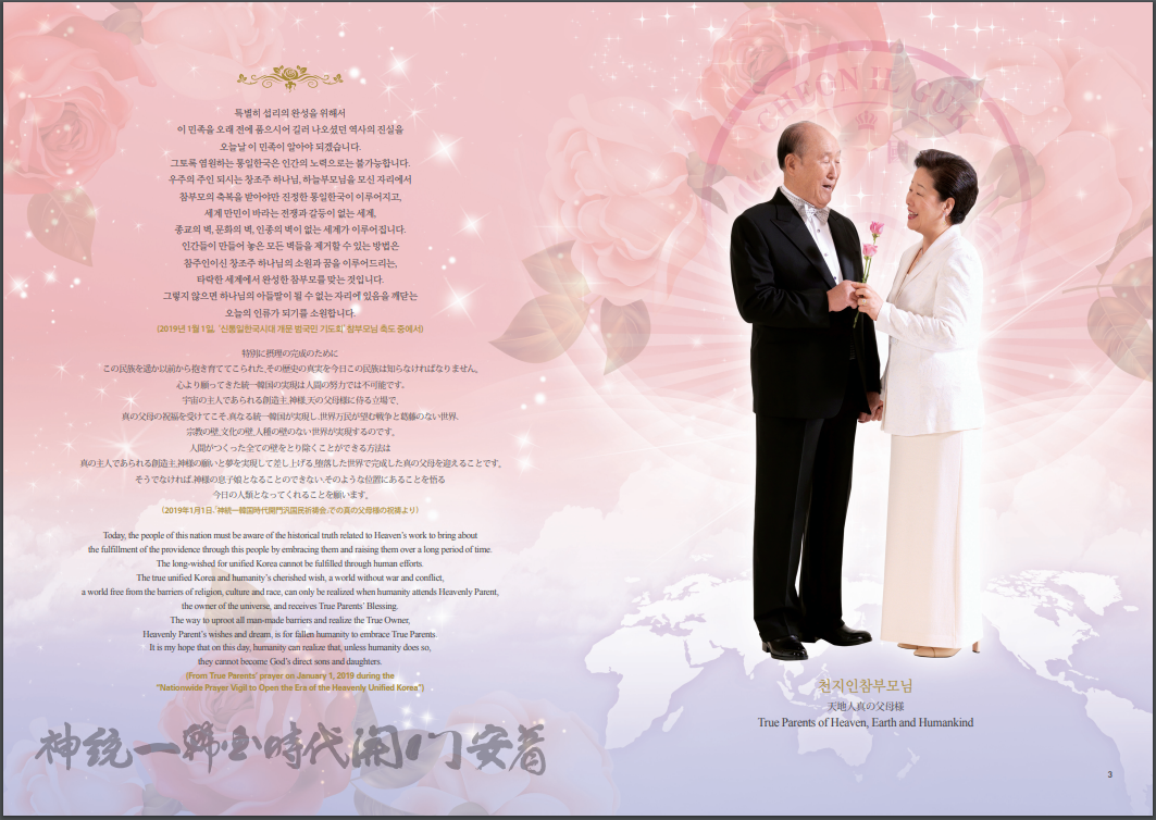 「天地人真の父母様聖誕記念パンフレット」の数ページから。