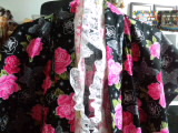 手芸店に娘と一緒に行ってきました。去年、子ども浴衣から私が昔着ていた浴衣にサイズが変わった娘。だ・け・ど・・・・お友達が来ている柄はキラキラして可愛いと。私のは昔からの定番とあって、友達と比べると確かに地味かも。生地売り場をウロウロしていると「お母さん!」と呼ばれ行ってみると、友達が着ていた浴衣の生地のようにキラキラしていて、柄が蝶とバラで今時のもの。。。。目を輝かせながら「この生地で浴衣が欲しい」と言われてしまいました。あのね~~~私、洋裁はやってたけど和裁は未経験なんだけど~~~~結局、店に売っていたパターンと生地5mを手にして帰ってきました。。。地元の祭りまで1か月と少し。間に合うだろうか。。。一応、昨日の間にパターンを切っておきました。裁断、縫製・・・・う~ん・・・・頑張ります