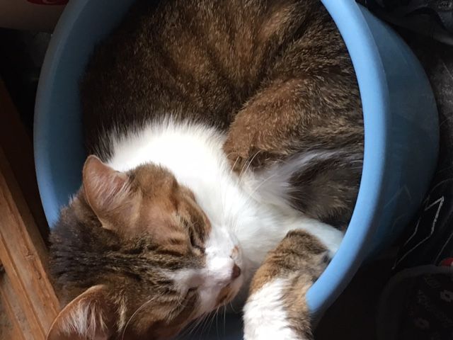 猫はどうして狭いところが好きなんでしょう。下駄箱の前にバケツを置いておいたら掃除できへんやん(-_-;)