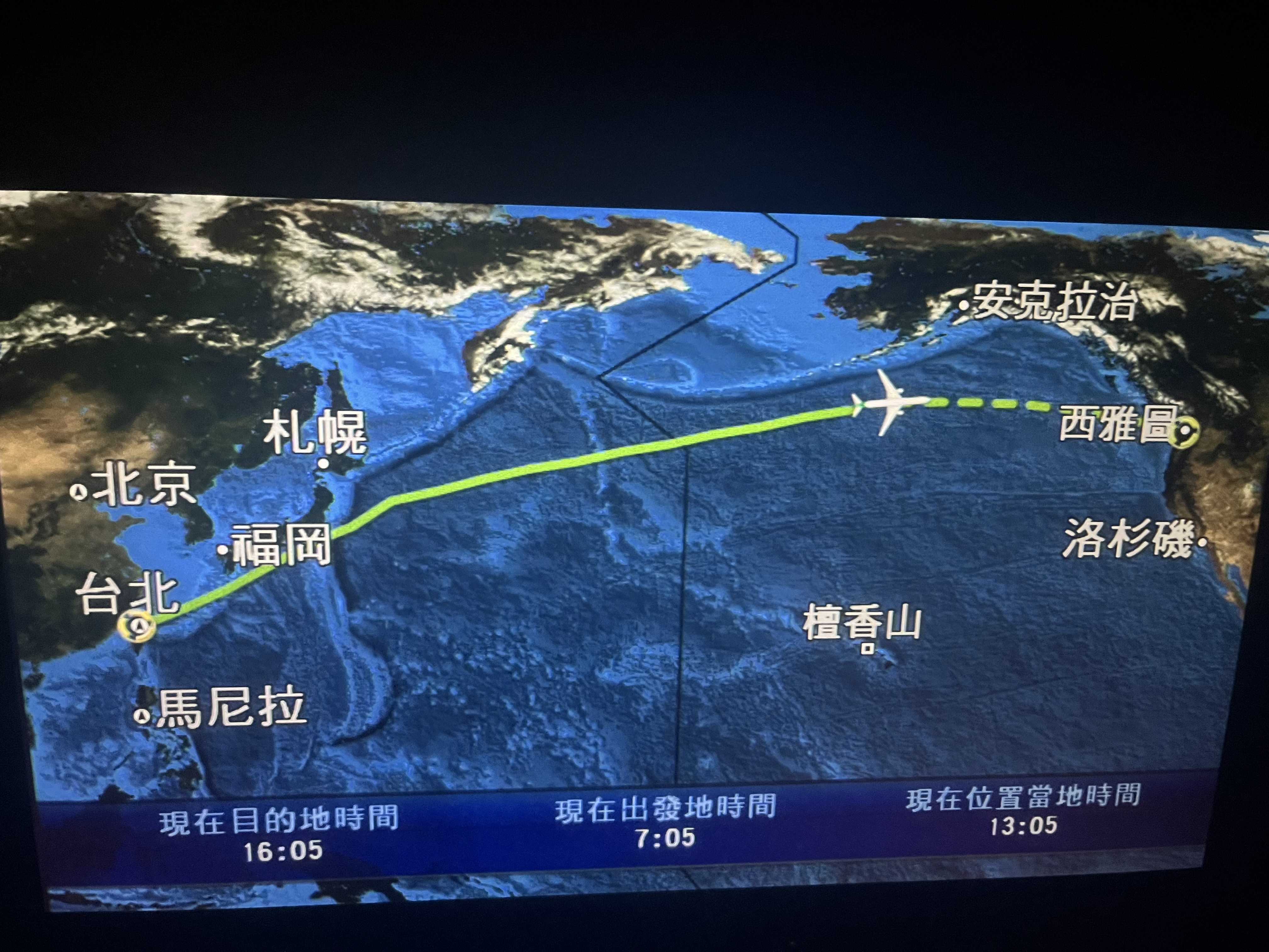 台湾の飛行機。エバーを使ってアメリカに。ココの機内食はどれも美味しかったです(*^▽^*)