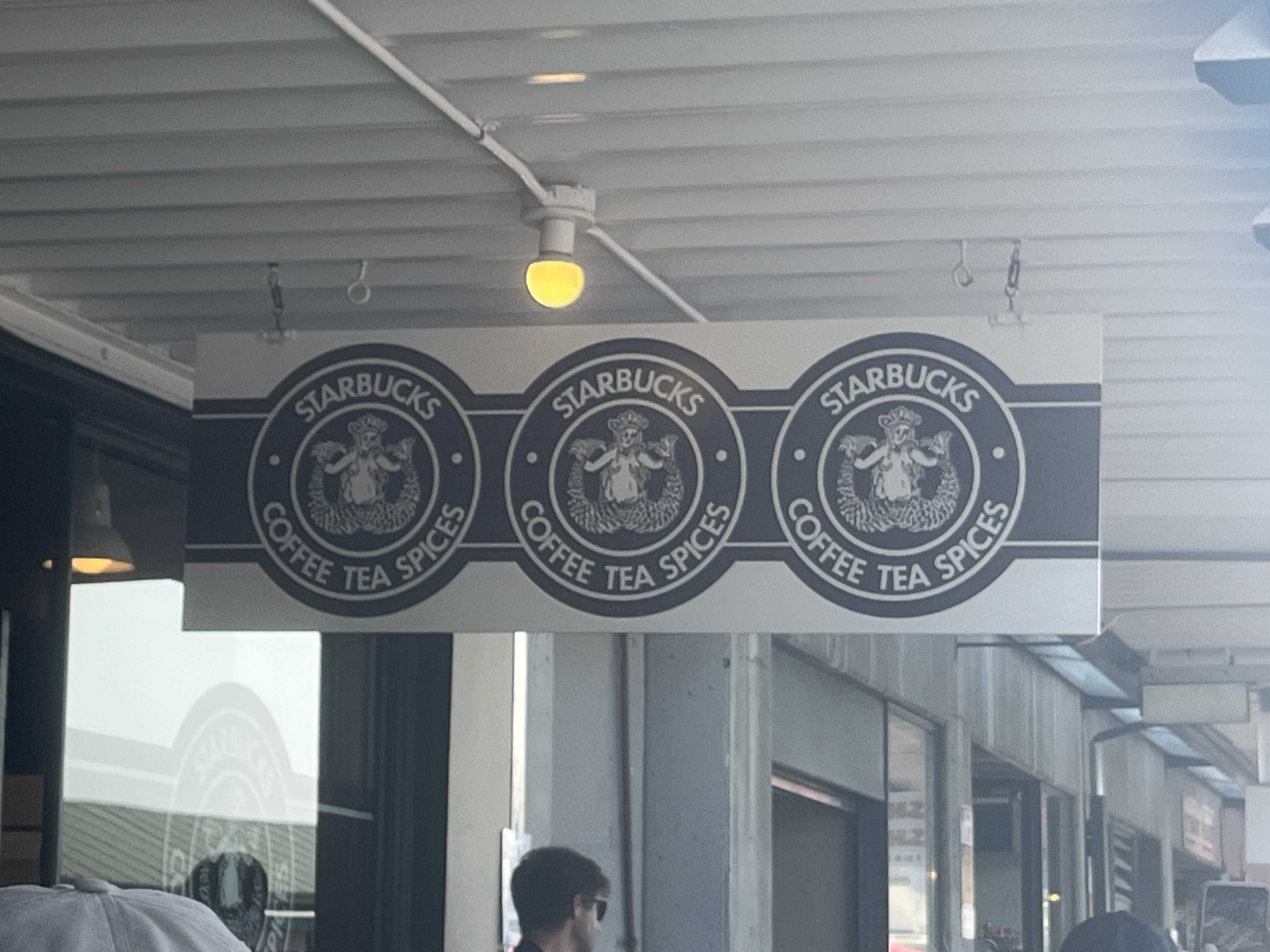 今日はスタバの一号店です。一号店は緑の看板じゃなくて茶色🤎この小さい店で始まって、世界的な企業に!アメリカンドリーム🌸夢あるわぁ💓海辺にあります。近くにはガムウォールとかもあって賑やか。ガムウォールって、ガムの壁って意味でして💦この壁の一つ一つがガム😅神経質な人は近寄れない😅ガムのカスにガムの包み紙とか、、、ありえないくらい張られています、、、娘は無理ーって😱この後はまい