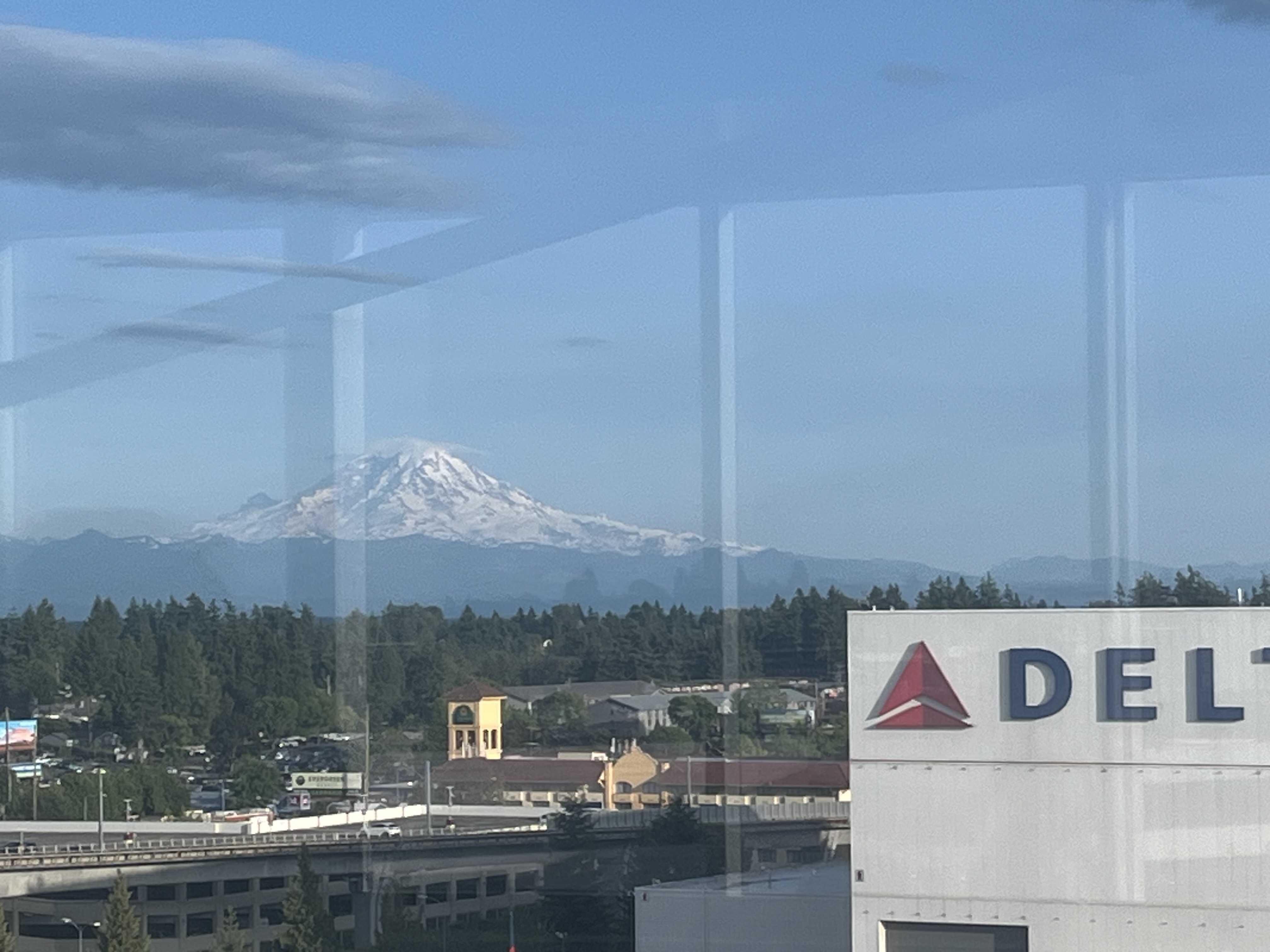 タコマ空港から見える景色。奥に見える山はマウントレーニアだそうで雪も残る姿は超綺麗。立ち止まって写真を撮る人も結構いました。さてコストコ。日本と同じ感じかなぁと思っていたら少々違うかな。店内は撮影禁止なので言葉だけになりますが、デリは種類が少な目。でもワッフルとハンバーグ?のセットとかは、日本てはいる発想すら浮かばないレベルの大きさ💦ひえー💦衣料はこちらの方が安いし種類も多め。アメリカンサイズなので大きいサイズも豊富。ここで部屋着なんかを数着買いました。思った以上に生地がしっかり。あとは昼ごはんにサンドイッチ。大雑把ですが、味は美味しい。コストコの後はスタバの本社!スタバ一号店は有名だけど、本社に行く人は少ないかな。星条旗を掲げて、カッコいい❣️スタバの話は次回です。
