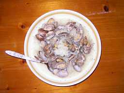 今晩のおかずでお勧めは、あさりの酒蒸しです。【作り方】1.玉ねぎのみじん切りを酒とバターで炒める。2.玉ねぎが透き通ってきたら、アサリをいれて かき混ぜ蓋をして時々かき混ぜながら開く まで蒸す。3.塩少々と胡椒、青海苔で味を整えて、出来上 がりです。(塩を入れすぎない事)