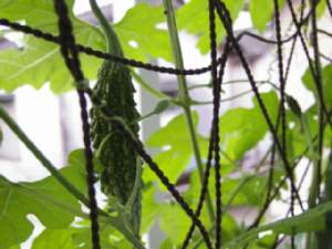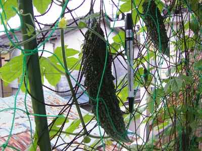 朝顔から胡瓜に変ったり二転三転していた、昨日のプランタの植物の正体が遂に判明しました、まだ小さいけどこの実を見たら間違いなくゴオヤです、ゴオヤはもっと暖かな地方で作る物と思っていましたが、はたして食べられる様になるか楽しみですね。