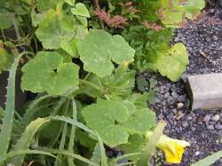 全然実をつけないプランタ栽培の南瓜に異変が、葉の所に白いカビの様な物がいっぱい出てきてしまった、さてどうするか、バカボンのパパに聞いたら”シケイナノダ”と言う事で廃棄処分にしてしまった、この後細かく切ってプランタの土の中に埋めて肥料代わりにしてゴミ削減にも協力しました。