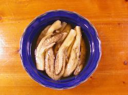 今晩のお勧めの一品は焼き茄子のおひたしです。【作り方】1.茄子を焼いて皮を向き、縦に裂く。2.鰹だし200cc+ミリン大さじ2+醤油小し3でだ しを作る。3.茄子にだしをかけて出来上がりです。4.食べる時に、刻みネギや大根おろしを乗せても 美味しいです。